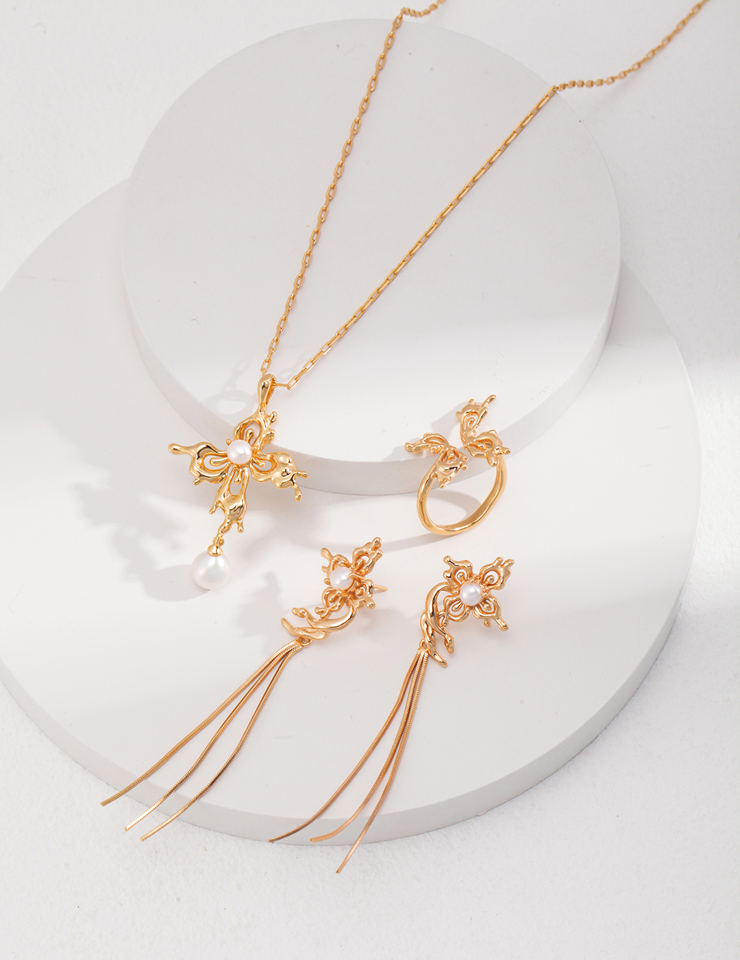 Immerse yourself in a world of gorgeous pearly luster with our Orchid Pearl Jewelry Set. This collection captures the effortless grace of nature, featuring a unique design that blends abstract orchid petals with the delicate imagery of butterflies in flight. Meticulously crafted with decorative pearls and flowing tassel details, each piece is designed to bloom with endless charm and sophistication. Find the perfect balance between luxury and refinement, and embrace your most unique self!